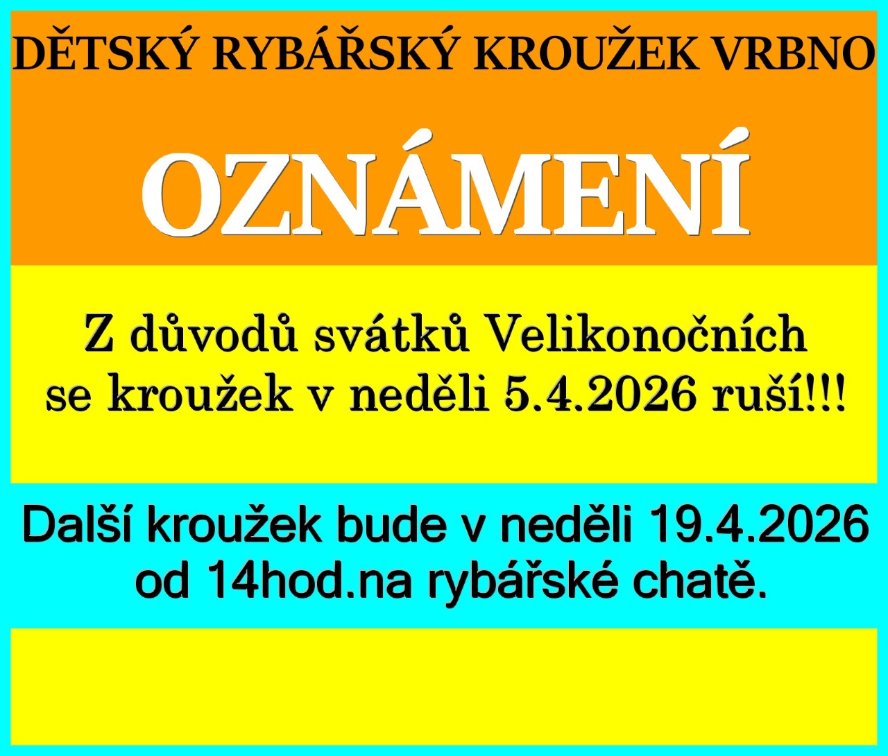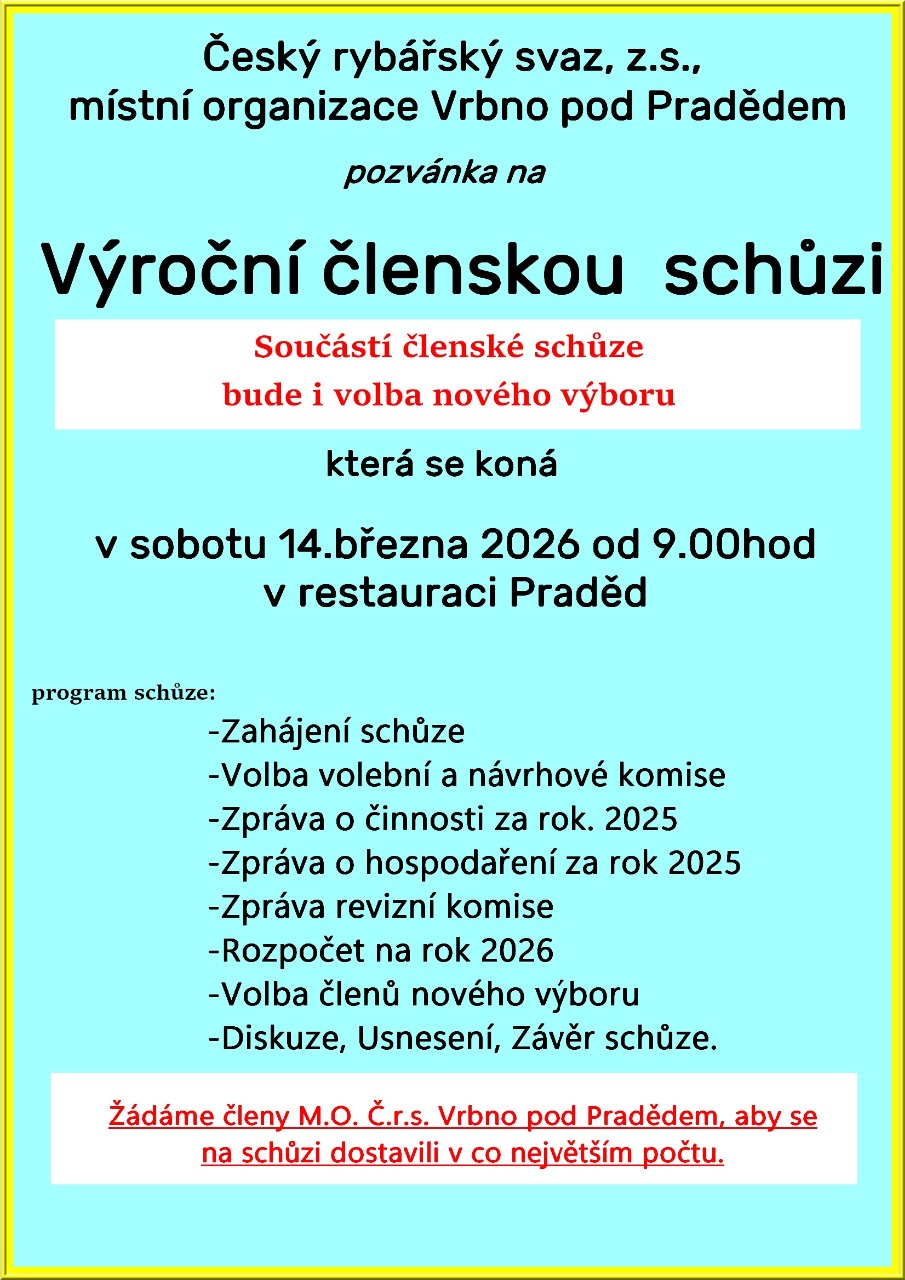 DĚTSKÝ RYBÁŘSKÝ KROUŽEK ZAHAJUJE NOVÝ ŠKOLNÍ ROK 2026 AŽ 2026 V NEDĚLI 14.ZÁŘÍ VE 14HOD - prozatím v budově Tj Sokol Vrbno - na fotbalovém hřišti. Další termíny do konce tohoto roku jsou v záložce DĚTSKÝ KROUŽEK.