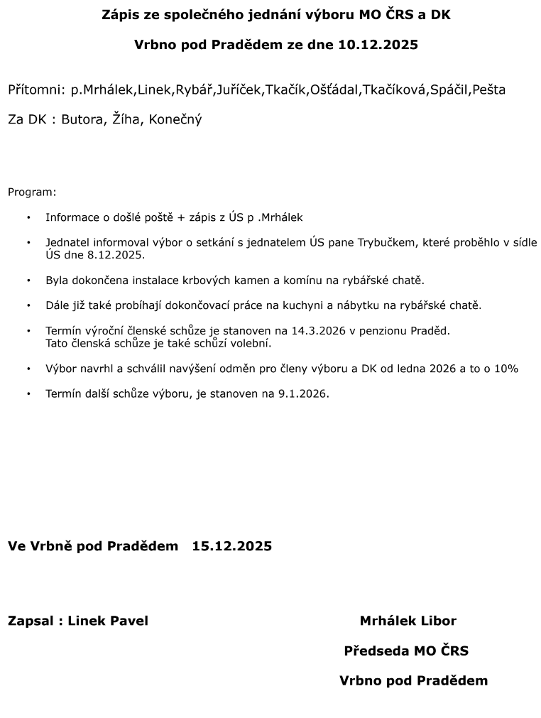 O dalším postupu bude Výbor MO ČRS Vrbno informovat.